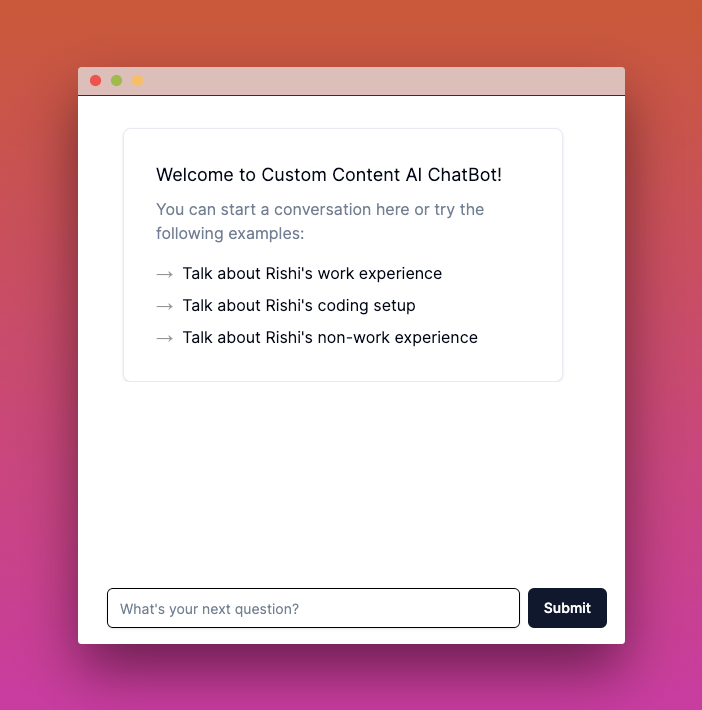 In this section, we talk about how we’ve setup the route: pages/api/chat.js to enable Cross Origin Requests, Rate Limit the Chat API Calls, Cache and Stream Responses to the users and expose a method to schedule content training on particular URLs, and pages/api/train.js to solely perform training on the given URLs but in the background.
