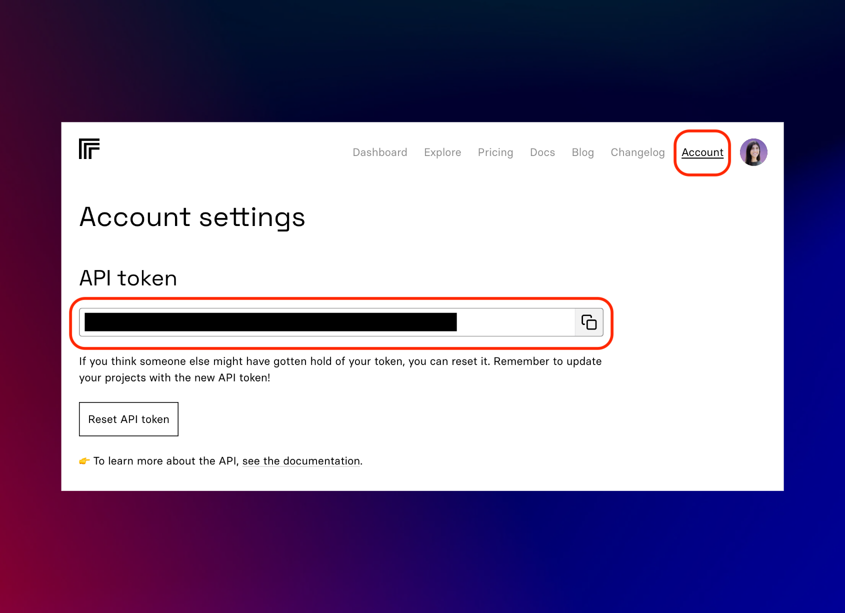 Once you have created a Replicate account and are logged in, you are going to go to the Account tab and save the API token somewhere safe.