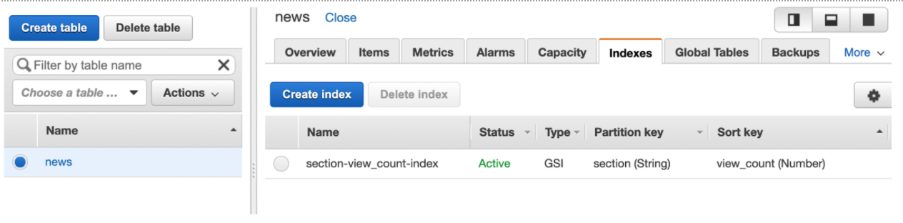 My index is GSI with partition key section (String) and sort key view_count (Number).
