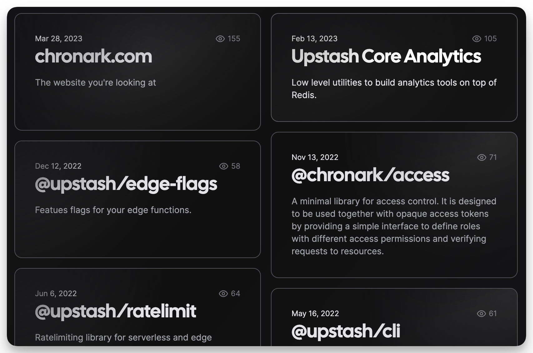 Here's an example of what we'll be building. Each card on the home page will show the number of views it has.