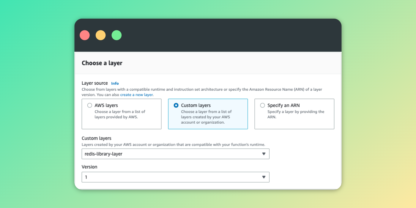 When the layer is created, we need to connect this layer to our shortener function. Go to the Layers section of the function and click Add a layer button.