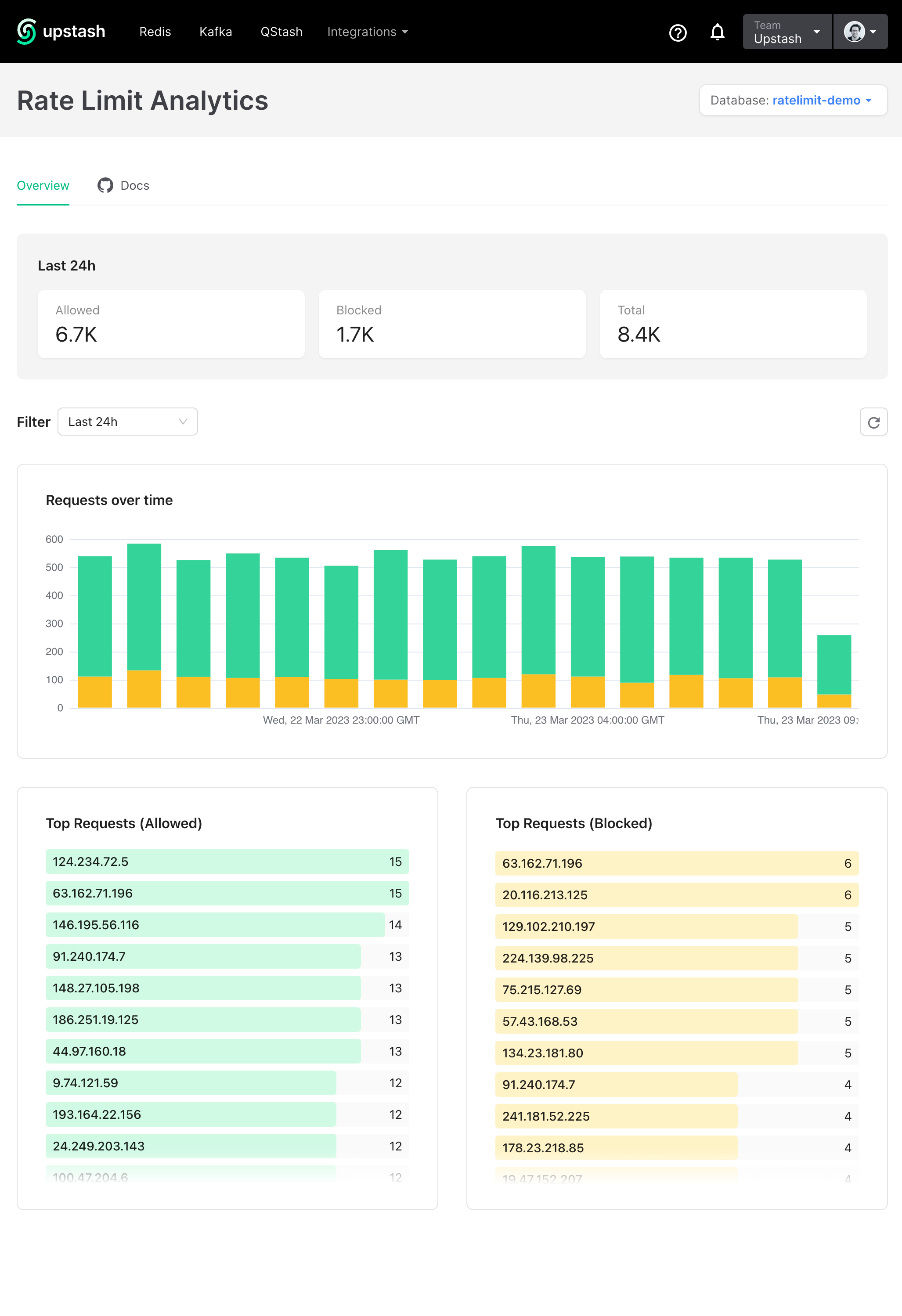 The best part is that using the @upstash/ratelimit SDK and dashboard is
