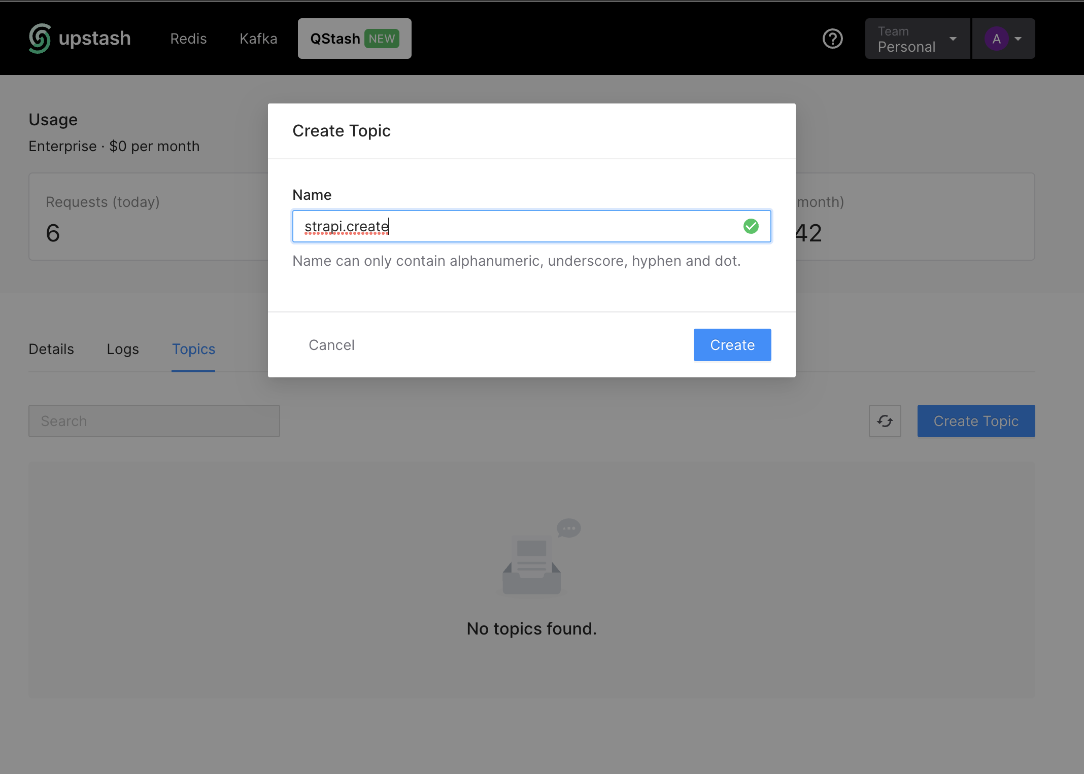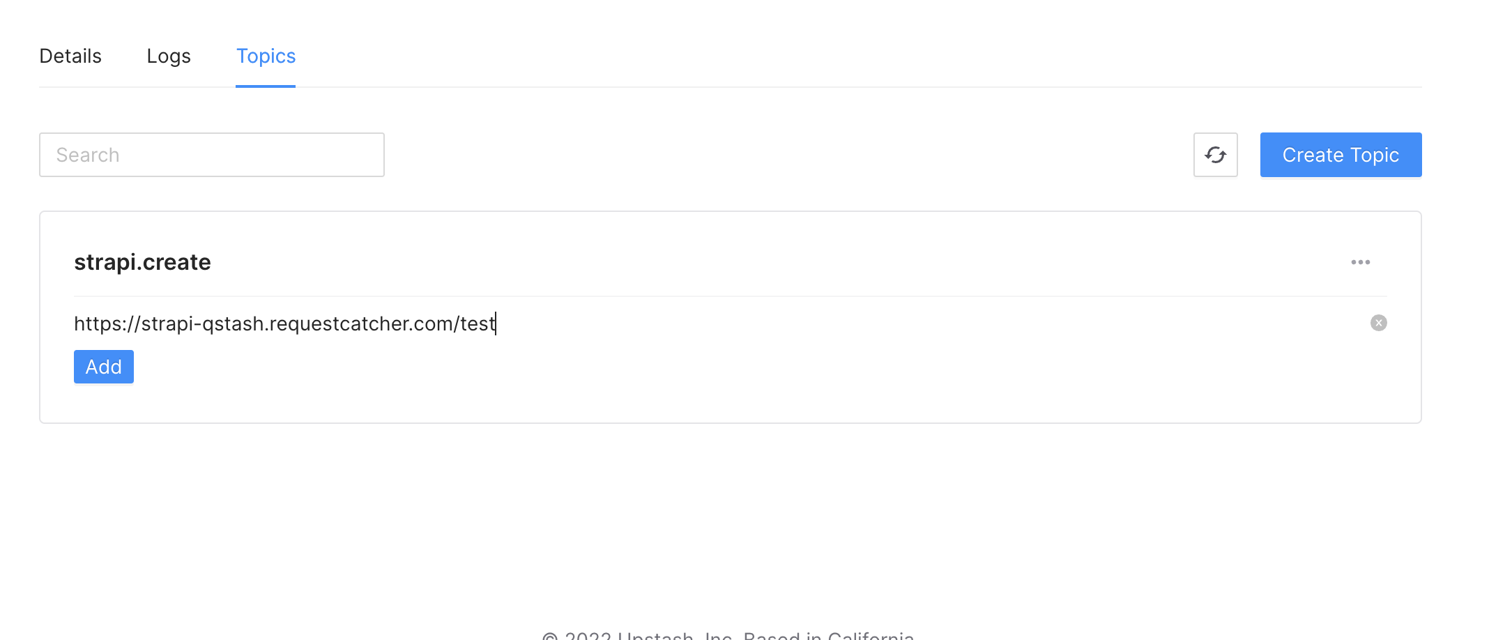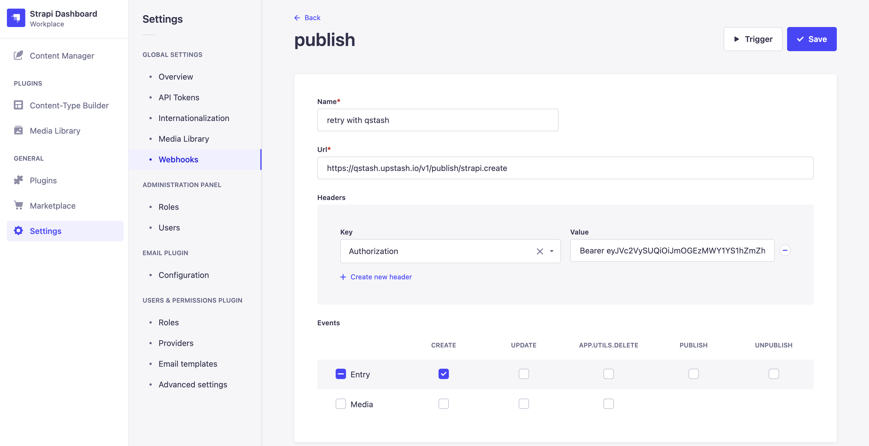 2. Replace the URL with https://qstash.upstash.io/v1/publish/strapi.create